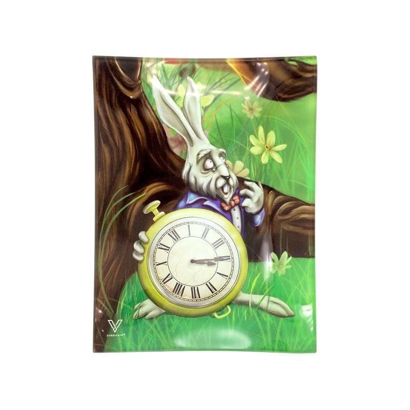 Descubre la combinación perfecta de arte y funcionalidad con nuestra Bandeja para Liar pequeña de Vidrio Templado "White Rabbit". ¡Haz clic ahora y añade un toque de genialidad a tu experiencia de liado!