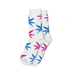 Calcetines Blancos y hojas de cannabis azules y rosa talla de mujer. Sumérgete en un mundo de estilo y comodidad con nuestra exclusiva colección de calcetines temáticos de cannabis. Diseñados pensando en los amantes de la cultura cannábica, ofrecemos una amplia variedad de modelos y colores para satisfacer todos los gustos y preferencias. Desde patrones llamativos y coloridos hasta diseños más sutiles y elegantes, nuestros calcetines son una expresión de tu pasión por el cannabis. Confeccionados con materiales de alta calidad, nuestros calcetines no solo son visualmente atractivos, sino también cómodos de llevar durante todo el día. Ya sea que prefieras calcetines largos o calcetines más cortos y discretos, tenemos opciones para todos los estilos y ocasiones. Nuestra colección incluye medidas para hombres y mujeres, asegurando un ajuste perfecto y cómodo para todos. Además, cada par de calcetines está cuidadosamente elaborado para garantizar durabilidad y resistencia al desgaste, para que puedas disfrutar de ellos durante mucho tiempo. Son el regalo perfecto para fiestas de cumpleaños, sorprende a un amigo con estos maravillosos calcetines.
