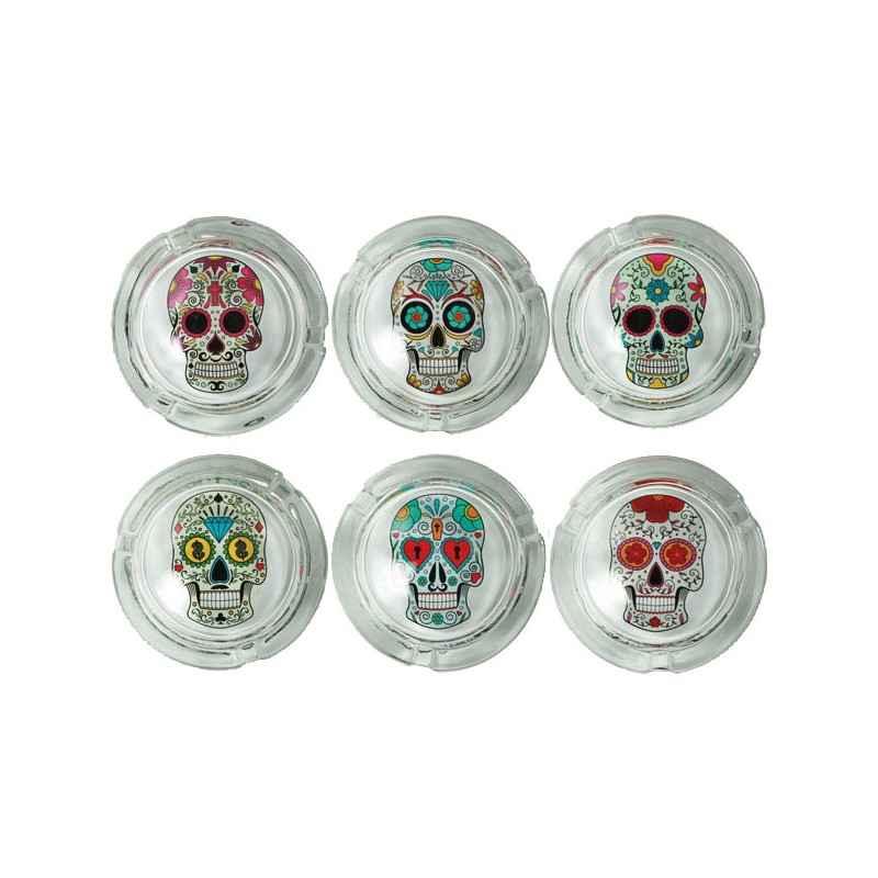 Cenicero de cristal con calavera mexicana con 6 unidades