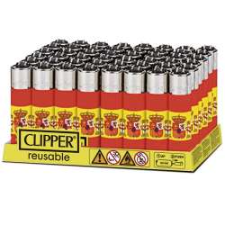 Clipper Bandera y Escudo España Display de 48 mecheros Clipper recargables con diseños únicos para satisfacer las preferencias de todos los clientes. Piezas reemplazables para una vida útil prolongada y un uso sostenible. ¡El complemento perfecto para cualquier tienda o estanco que quiera ofrecer la mejor calidad a sus clientes!