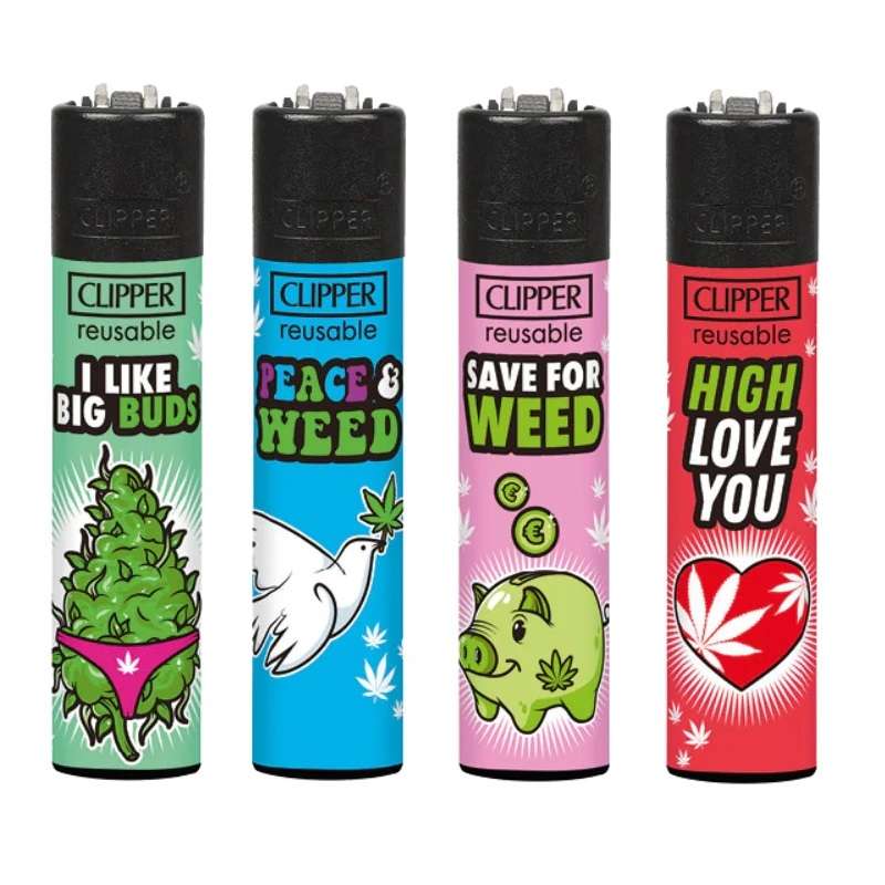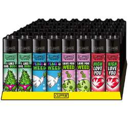 Clipper Weed Slogan 11 Display de 48 mecheros Clipper recargables con diseños únicos para satisfacer las preferencias de todos los clientes. Piezas reemplazables para una vida útil prolongada y un uso sostenible. ¡El complemento perfecto para cualquier tienda o estanco que quiera ofrecer la mejor calidad a sus clientes!