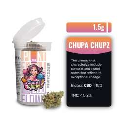 Flores Chupa Chupz CBD 1,5gr de Plant Of Life Los cogollos de Chupa Chupz mezclan aromas dulces, afrutados y cremosos que recuerdan a caramelos, golosinas, frutas tropicales y cítricas y con toques de vainilla y nata.