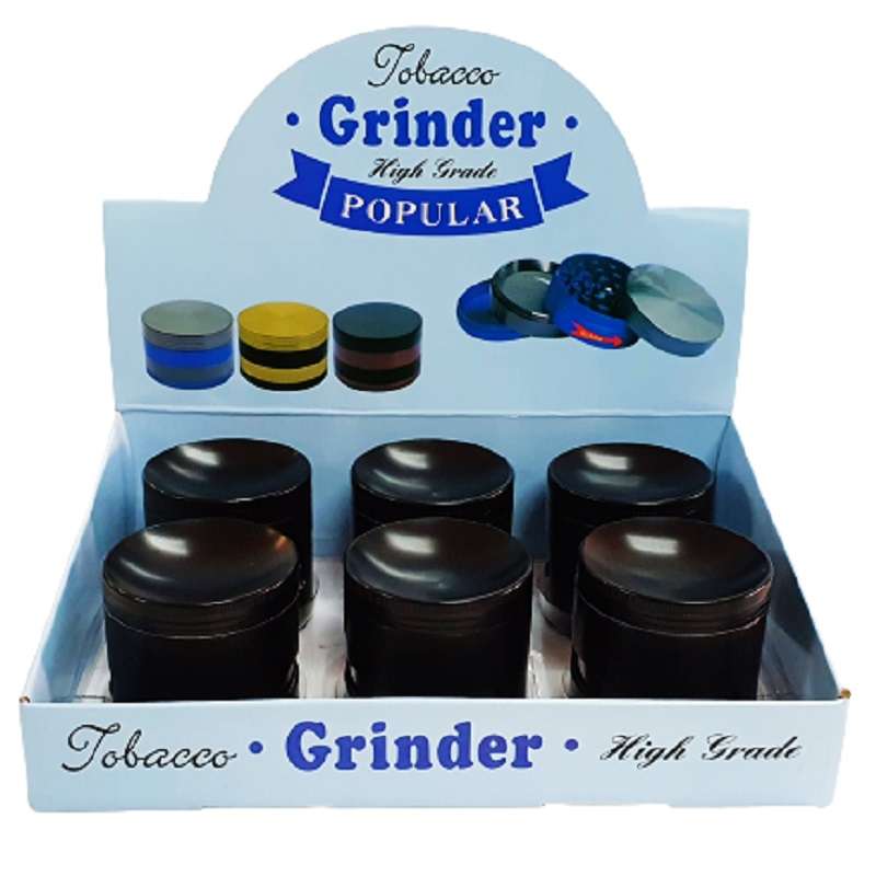 Esta caja de 12 grinders de metal te encantará por su diseño negro y acabado de alta calidad. Cada grinder tiene un diámetro de 53mm y una altura de 51mm, lo que los hace perfectos para moler tus hierbas favoritas de manera rápida y efectiva. Cada grinder consta de cuatro partes. Incluyen un polinizador, espátula y un visor para que puedas ver el proceso de molienda. La tapa ahuecada es una característica que te permitirá vaciar el contenido de tu grinder y ayudarte en el proceso de liado pudiendo utilizarlo a modo de bowl. Estos grinders son ideales tanto para uso personal como para regalar a amigos . Disfruta de su diseño elegante y eficiencia en la molienda y hazte con ellos hoy mismo.