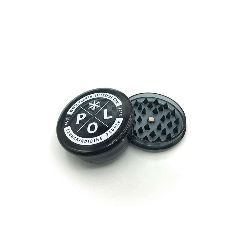 Grinder de plástico negro , de 60mm con el logo de Plant of Life.