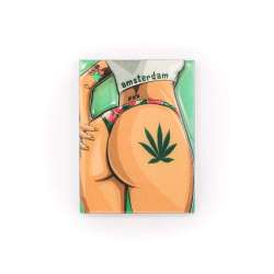 Caja de 24 imanes con diseño de chica, Amsterdam y hoja de cannabis.