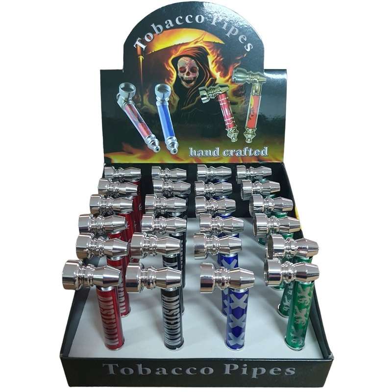 Pipas de metal en varios colores y diseños disponibles.