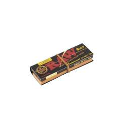 Raw Black Connoisseur 1 14 Con Filtros es un papel ultrafino diseñado para una combustión más lenta. Con medidas de 76 X 44mm, cada caja contiene 24 librillos de 50 hojas y filtros cada uno, fabricados únicamente con materiales naturales y 100% veganos.
