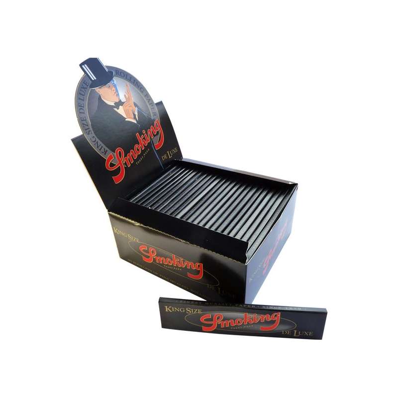 Descubre la caja de papel de liar Smoking Deluxe King Size de la reconocida marca Smoking. Esta caja contiene 50 librillos, cada uno con 33 hojas ultrafinas de 44mm de ancho que proporcionan una experiencia incomparable. Fabricados con papel de la más alta calidad y diseñados para una combustión lenta y uniforme, estos papelillos permiten disfrutar al máximo del sabor y aroma de tu hierba favorita.