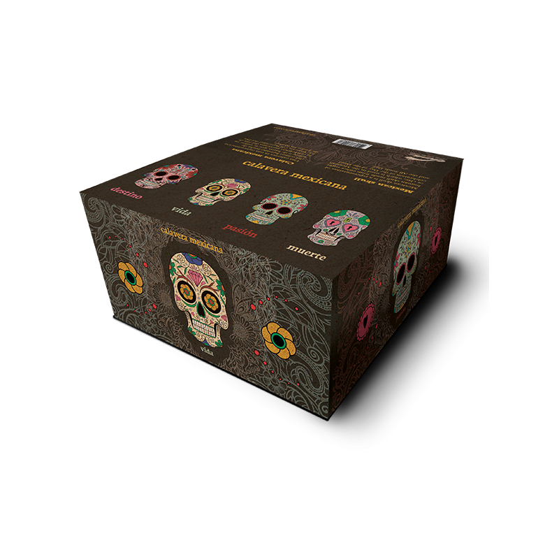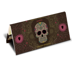 Pack de 20 librillos King Size Snail Papel de Liar Calavera Mexicana Marrón con Cierre Magnético. Cada librito contiene 32 hojas y 32 filtros. Papel sin blanquear para una experiencia auténtica. Dimensiones de 110 × 53 mm para una experiencia excepcional. 4 diseños diferentes de Calavera Mexicana por caja: Destino, Vida, Pasión y Muerte. Ultra fino, combustión lenta, goma arábiga para una experiencia única. Packaging cuidadosamente diseñado que refleja la rica cultura mexicana.