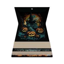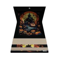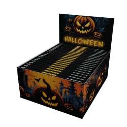 - Pack de 20 librillos King Size Snail Papel de Liar Halloween con Cierre Magnético. - Cada librito contiene 32 hojas y 32 filtros. - Dimensiones de 110 × 53 mm para cigarrillos personalizados. - 4 diseños temáticos de Halloween por caja. - Ultra fino, unbleached, combustión lenta, goma arábiga. - Packaging cuidadosamente diseñado con temática de Halloween.