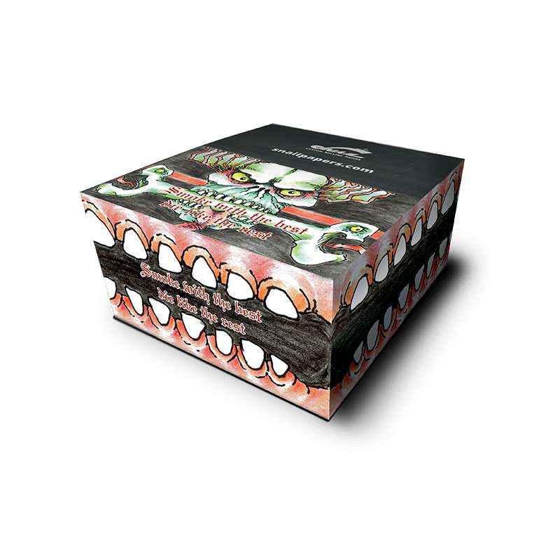 Pack de 26 librillos King Size Snail Papel de Liar Horror. 32 hojas ultrafinas y 32 filtros para una experiencia excepcional. 4 diseños diferentes con temática espeluznante de Horror. Ultrafino, combustión lenta, goma arábiga de alta calidad. Packaging diseñado para sumergirte en el mundo del horror.