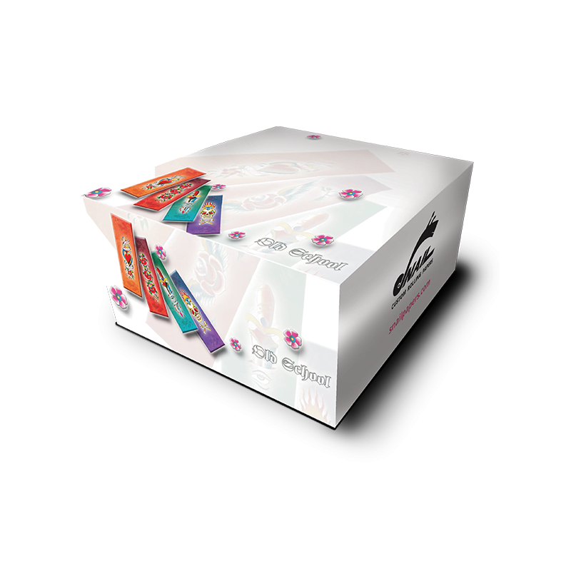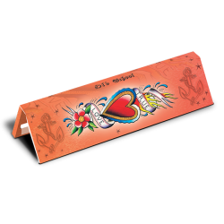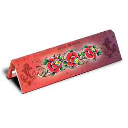 Pack de 26 librillos King Size Snail Papel de Liar Old School. 32 hojas ultrafinas y 32 filtros. Dimensiones de 110 × 27 mm. 4 diseños diferentes inspirados en el arte del tatuaje Old School. Ultrafino, combustión lenta, goma arábiga para una experiencia excepcional. Packaging diseñado para reflejar la estética vintage del tatuaje Old School.