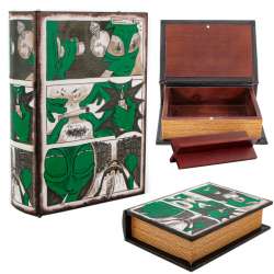Stash Libro Alien Visitor Descubre las cajas de ocultación de Magic Leaf. Con forma y diseño de libro para que puedas ocultar tus utensilios. Dentro encontrarás diferentes espacios para guardar , una maderita para liar y un prensador. Fabricado en madera. Medidas : 18,6 x 13,5 x 5,2 Peso : 0,5
