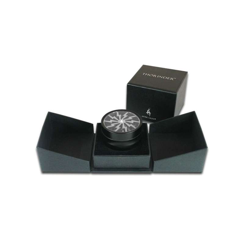 Thorinder Grinder Aluminio Ø 62 mm After Grow | Plateado Fabricado en aluminio de alta calidad. -Superficie en negro mate. -4 partes, 62mm diametro. -Tapa transparente resistente a los arañazos. -Teeth tech: distribucion de dientes especifica para el mejor molido y recuperación de resina. -Packaging exclusivo incluido.