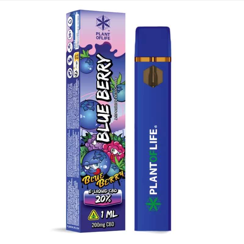 Vaporizador Desechable E-Liquid 20% CBD sabor Blueberry de Plant of life. El vaporizador desechable de Plant Of Life es la mejor manera de disfrutar un vapeo de calidad de una manera fácil y cómoda. Su contenido es de 1ml de E-Liquid con 20% de CBD, esto se traduce a 200mg de cbd por ml.