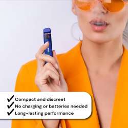 Para poder disfrutar del vaporizador desechable no es necesario apretar ningún botón. Simplemente inhale y el dispositivo se pondrá en marcha. No es necesario cargar la batería. Una vez finalizado el contenido, deseche el vaporizador de manera adecuada.