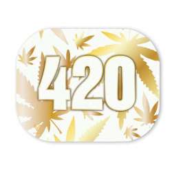 Vsyndicate Mag Slaps Pequeña 420 Gold. V-Syndicate te trae la tapa magnética para bandejas que te permite guardar mejor tus utensilios en la bandeja sin la necesidad de tener especial cuidado con no volcar su contenido. Sólo tiene que colocar la tapa sobre su bandeja y quedará cerrada gracias a su banda magnética. Evita que los pelos de tus mascotas, polvo o las miradas indiscretas se mezclen con tus bienes a la vez que te proporciona una superfície extra soble la que liar. También es posible colocarla en la parte inferior de la bandeja para conseguir una superfície más estable. Por supuesto esta tapa también puede servir de decoración en su nevera.