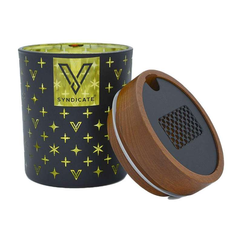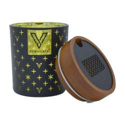 V Syndicate SmartStash envase para flores que incorpora un grinder, un dosificador y un humidificador.