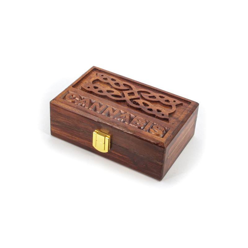 Boîte en bois avec Ornement Cannabis Design | 15x10x6cm