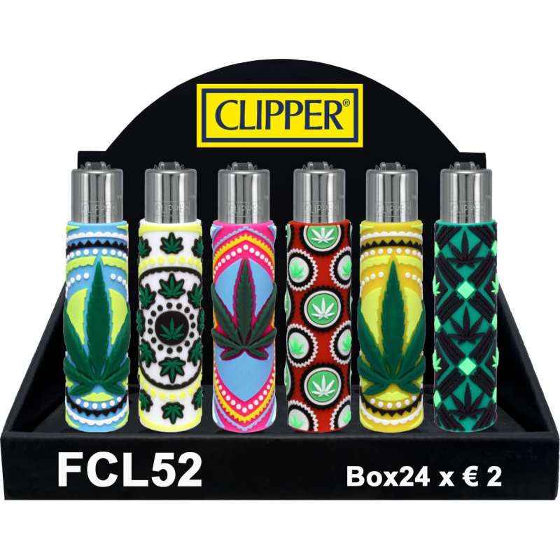 Clipper avec étui en cuir Feuille de cannabis Doré | x 24