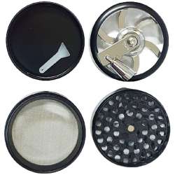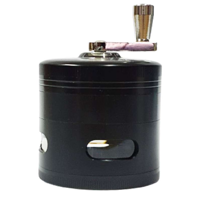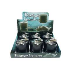 Boîte contenant 6 grinders en métal de haute qualité de couleur noir, avec un diamètre de 59mm et une hauteur de 57mm. Chaque grinder est composé de 4 parties, comprenant une chambre de broyage, de stockage, un filtre et un pollinisateur avec un viseur. Il est également équipé d'une spatule pratique et d'une manivelle pour faciliter le broyage. Parfaits pour moudre des herbes et du tabac rapidement et efficacement. Idéals pour un usage personnel ou pour partager avec des amis. Une solution pratique et de haute qualité pour les magasins, les distributeurs et les utilisateurs.