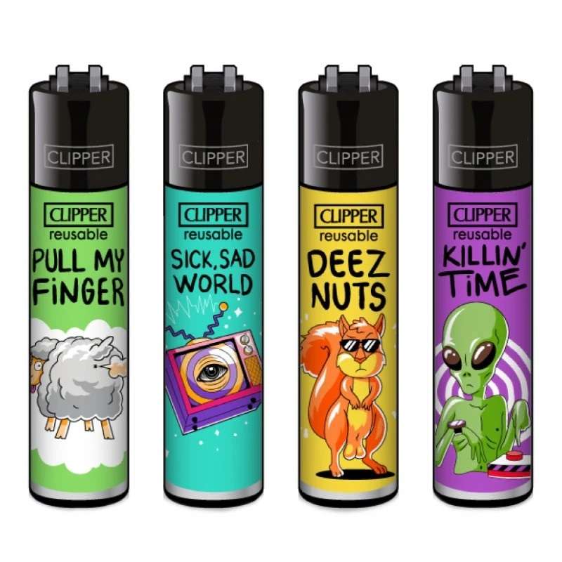 Clipper Mix Slogan 4 Présentoir de 48 briquets Clipper rechargeables avec des designs uniques pour satisfaire les préférences de tous les clients. Pièces remplaçables pour une durée de vie prolongée et une utilisation durable. Le complément parfait pour tout magasin ou bureau de tabac qui souhaite offrir la meilleure qualité à ses clients!