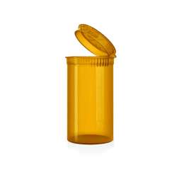 Récipient en plastique avec fermeture popup. De taille moyenne, idéal pour le cannabis. Couleur dorée.