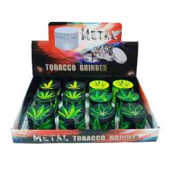 Cette boîte de 12 grinders en métal avec un design de feuilles de cannabis verts imprimé à 360 degrés, chacun ayant un diamètre de 40mm et une hauteur de 37mm. Chaque grinder est composé de quatre parties, y compris un polinisateur et une spatule. Le design est exceptionnel et est fabriqué avec du métal de haute qualité. C'est une opportunité unique pour améliorer votre expérience et de profiter d'un design unique et vibrant.