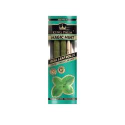 King Palm Slim Rolls Magic Mint. Présentoir de 20 packs de 2. Profitez dune expérience fraîche, propre et sans additifs avec les Slim Rolls Magic Mint de King Palm. Fabriqués à partir de feuilles de palmier 100 % naturelles et délicatement parfumés à lessence naturelle de menthe, ils offrent une alternative écologique, sans tabac et à combustion lente. Chaque pack comprend 2 cônes pré-roulés, accompagnés dun filtre biodégradable en feuille de maïs et dune tige en bambou facilitant le remplissage.