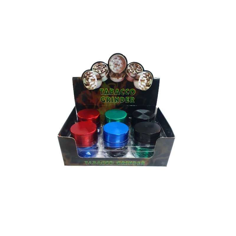 La boîte contient 12 moulins à herbes en métal de 40mm de diamètre et 24mm de hauteur, avec 3 parties et plusieurs couleurs différentes. Parfait pour broyer vos herbes et votre tabac de manière efficace et personnalisée.