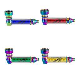 Fabriquées en métal résistant, ces pipes affichent une longueur réduite de 7,2 cm, parfaite pour un usage discret et portable. Elles sont disponibles en plusieurs couleurs vives telles que bleu, rouge, vert et jaune, apportant une touche dynamique à toute vitrine ou comptoir.