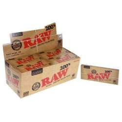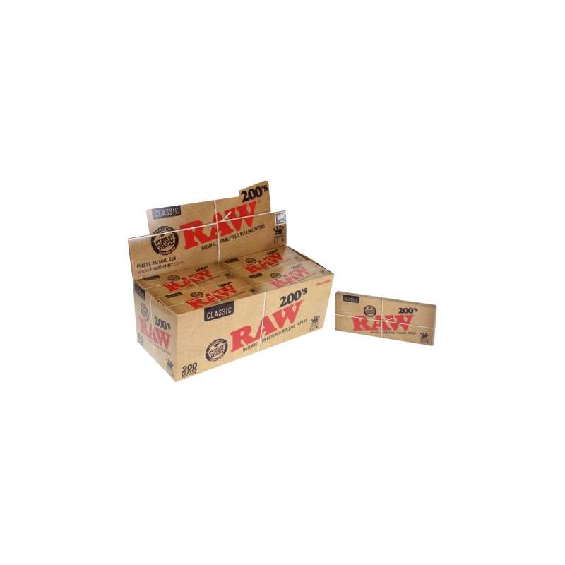 Découvrez les nouveaux papiers à rouler Raw King Size Slim 200's Classic. Chaque boîte contient 40 carnets, et chaque carnet contient 200 papiers. Mesures : 110mm x 44mm.