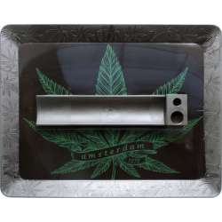 Rolling Tray en plastique noir Amsterdam Feuille. Profitez d'une expérience pratique et stylée avec ces plateaux en plastique. Ce plateau compact et léger est conçu pour ceux qui recherchent commodité et organisation lors de la préparation de leurs cigarettes, sans renoncer à la personnalité et au style des designs inspirés par la ville vibrante d'Amsterdam.