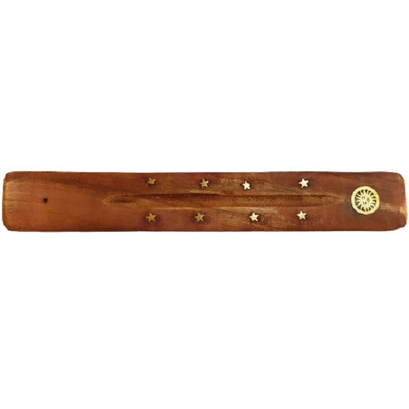 Ce support d'encens en bois a une longueur de 25,5cm et dispose d'un design unique de soleil doré et d'étoiles dorées sur la base. Le bois de haute qualité assure une durabilité et une résistance adaptées à une utilisation prolongée, tandis que le support offre une base stable pour vos bâtonnets d'encens préférés. En plus d'être pratique, le design est élégant et décoratif, ajoutant une touche de style à n'importe quelle pièce de votre maison.