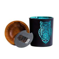 Le dessus du couvercle SmartStash comporte une carte de broyeur magnétique brevetée, qui vous permet de broyer les herbes directement dans le bac en bois.