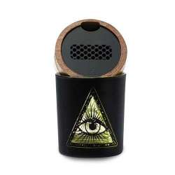 Conteneur V Syndicate SmartStash pour fleurs qui comprend un moulin, un distributeur et un humidificateur. Le dessus du couvercle SmartStash comporte une carte de broyeur magnétique brevetée, qui vous permet de broyer les herbes directement dans le bac en bois. Sous le couvercle se trouve un compartiment humidificateur qui est sécurisé par une plaque métallique magnétique. Taille moyenne: 10,2 cm de haut | capacité 14 grammes de fleur