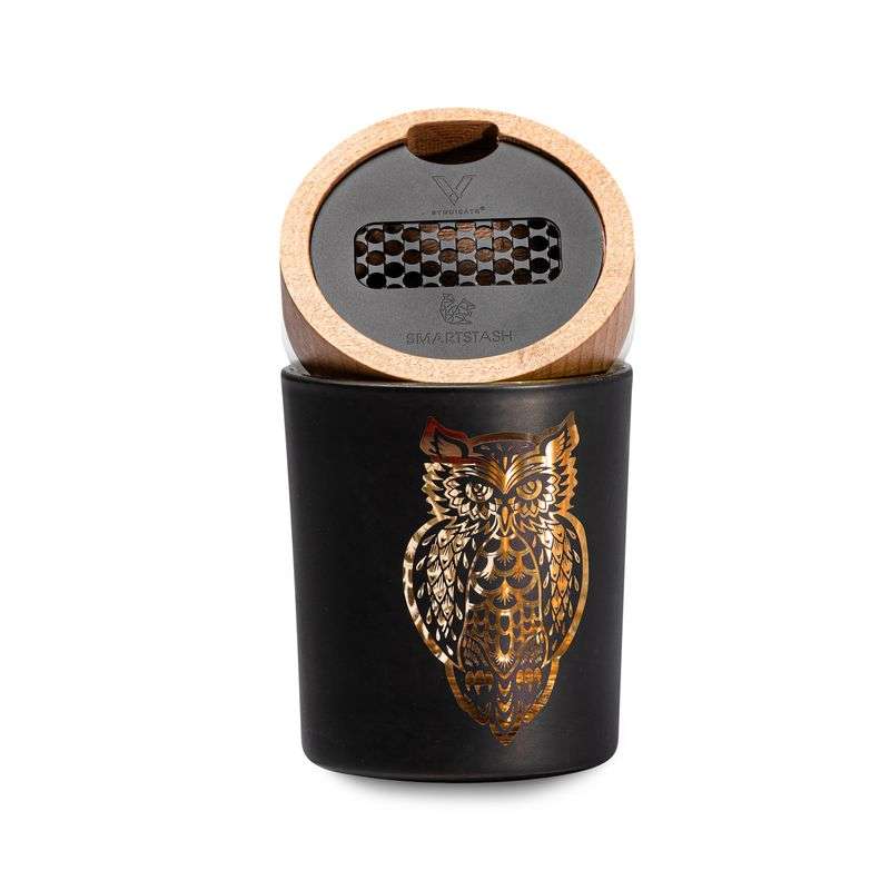 Conteneur V Syndicate SmartStash pour fleurs qui comprend un moulin, un distributeur et un humidificateur.