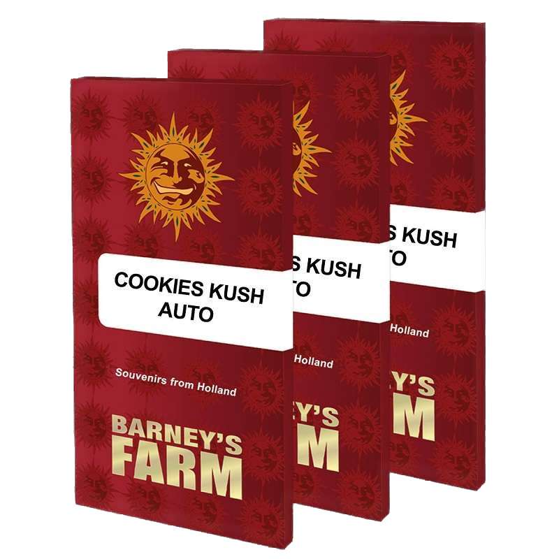 Pacote com 3 sementes de Barney's Farm Cookies Kush Auto. Seus brotos compactos e brilhantes emitem um aroma complexo e cativante. Uma combinação única!