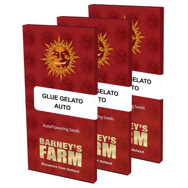 Pack de 3 sementes de Barney's Farm Glue Gelato Auto. Glue Gelato Auto, um cruzamento de Gorilla Glue x Gelato x BF Super Auto #1. Buds requintados e compactos com sabores frutados, terrosos e cítricos.