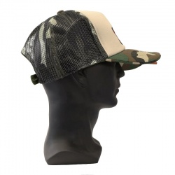 Design tipo trucker com painel frontal bege e pala camuflada Logótipo Raw bordado em relevo Frase A natural way to roll na parte frontal da pala Malha traseira preta para melhor ventilação Fecho snapback ajustável Tamanho único unissexo Leve, resistente e confortável Produto original Raw