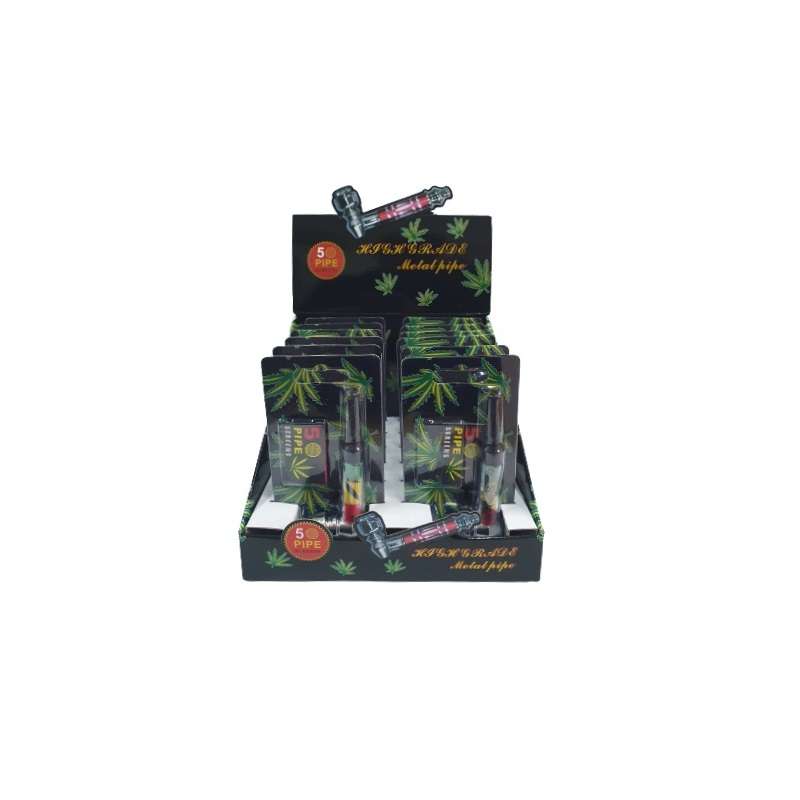 Cachimbo de Metal Bocal Longo Marijuana Rasta | Caixa com 12 unidades