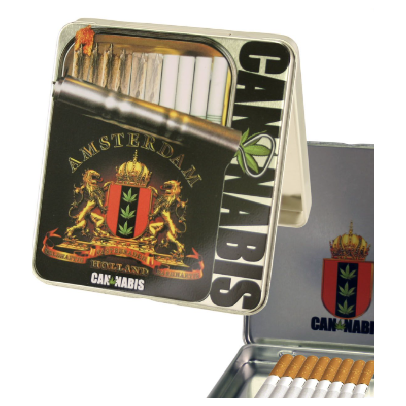 Caixa de cigarro de metal Amsterdam Cannabis 1 design