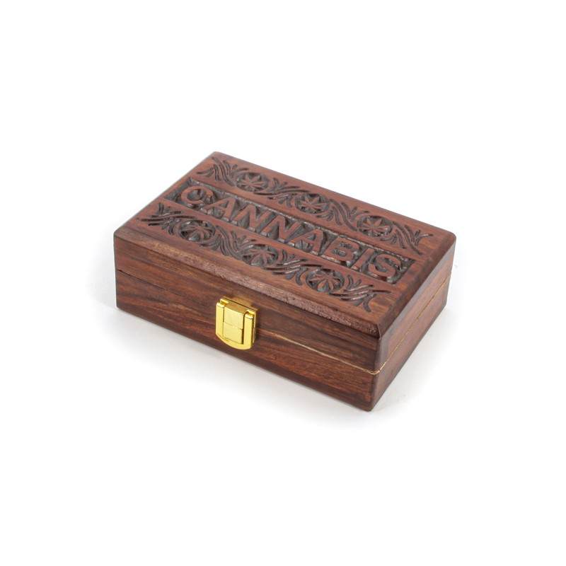 Caixa de madeira com Cannabis e Ornamento Design | 15x10x6cm