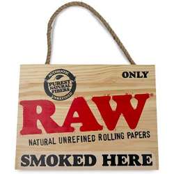 Cartaz de madeira com logotipo Raw e mensagem "smoked here". Medidas de 30,5 cm x 23 cm x 1 cm para um impacto visual perfeito. Corda incluída para pendurar confortavelmente.