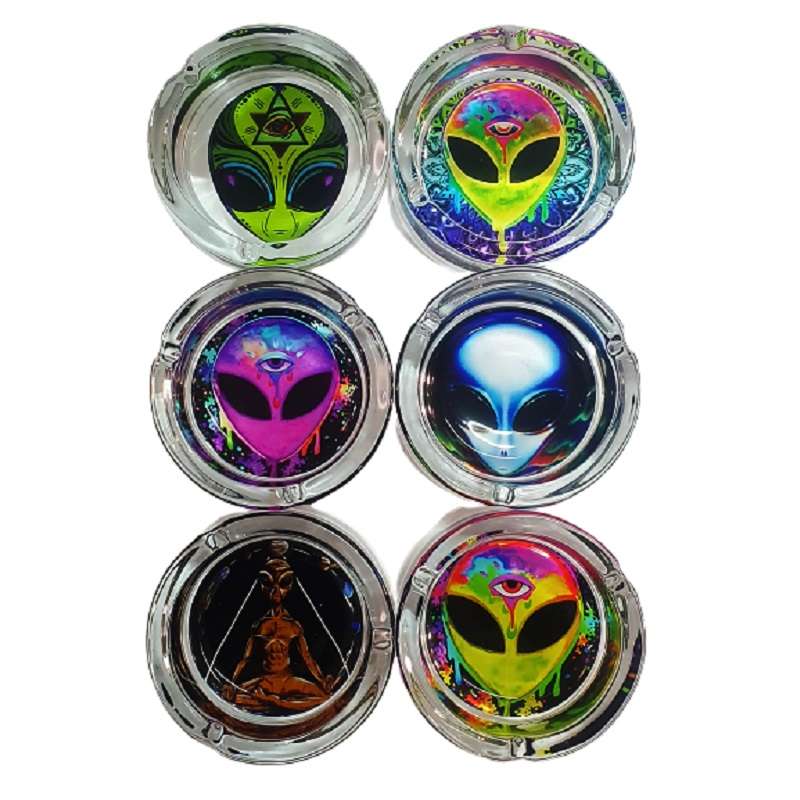 És um apaixonado por aliens? Se sim, esta caixa de 6 cinzeiros de vidro com designs de aliens a cores é perfeita para ti. Cada cinzeiro apresenta um design único inspirado nestas criaturas extraterrestres, tornando-os ideais tanto para uso pessoal como para adicionar à tua loja ou catálogo de distribuição. Com um diâmetro de 100 mm e uma altura de 38 mm, estes cinzeiros são suficientemente grandes para conter cinzas e beatas sem serem demasiado volumosos. Além disso, possuem uma base estável que os torna perfeitamente equilibrados e difíceis de virar. Dá um toque único à tua coleção de acessórios com este conjunto de 6 cinzeiros de vidro com designs de aliens.