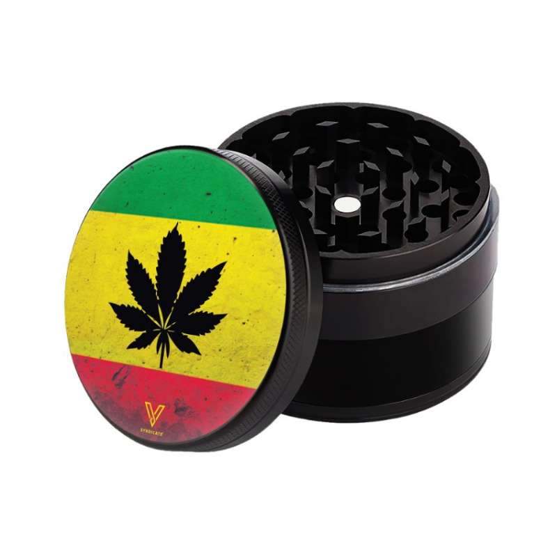 Grinder Cerâmico Antiaderente Clean Cut 4 partes 50mm Rasta Leaf da V-Syndicate. O Grinder Cerâmico V Syndicate Clean Cut é o acessório perfeito para quem procura uma ferramenta eficiente e durável. Este grinder foi desenhado com características que o destacam, proporcionando uma experiência de moagem superior graças à sua construção de alta qualidade e design inovador.