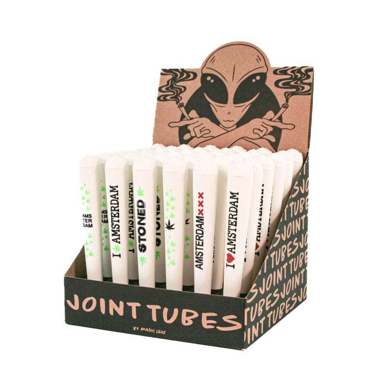 Joint Holder Branco Amsterdam Mix 2 Essas porta cigarros são a maneira mais rápida e conveniente de proteger e preservar seus charutos. Ideal para dispensários, tabacarias e uso pessoal. A abertura é muito fácil, basta pressionar o topo do recipiente e ele abrirá. Mantenha seus charutos intactos ao sair de casa ou guarde o cigarro iniciado que você não conseguiu terminar! Os tubos são herméticos, o que mantém seu conteúdo e odores por mais tempo. Pacote de 36 unidades.