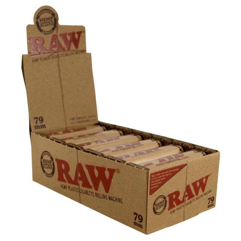 A Máquina de Enrolar Raw Hemp 79mm é uma máquina de enrolar compacta e fácil de usar. Feita com BIO Plástico de cânhamo 100%, permite que você crie cigarros caseiros com papel de enrolar 1 1/4 e 1 1/2. Caixa com 12 unidades.