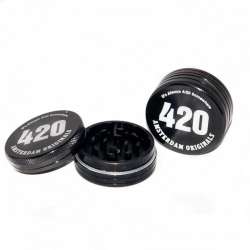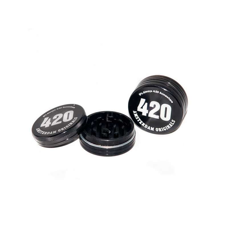 Grinder redondo de aluminio de dos partes, de color negro y imagen 420.