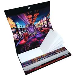 Pacote de 20 livretos King Size Papel para enrolar Snail Las Vegas com Fecho Magnético. Cada livrinho contém 32 folhas e 32 filtros. Dimensões de 110 × 53 mm para cigarros personalizados. 4 designs temáticos de Las Vegas por caixa. Ultra fino, queima lenta e goma arábica. Embalagem cuidadosamente projetada com tema de Las Vegas.